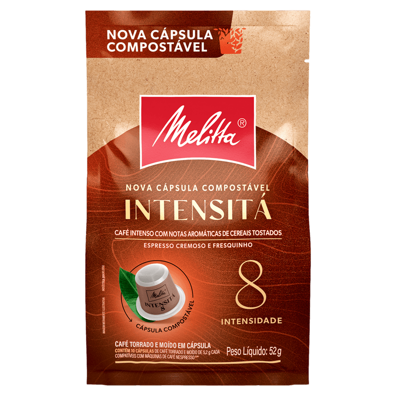 Café MELITTA Compostável Intensitá Intensidade 8 Compatíveis com Máquinas Nespresso com 10 Cápsulas 52g
