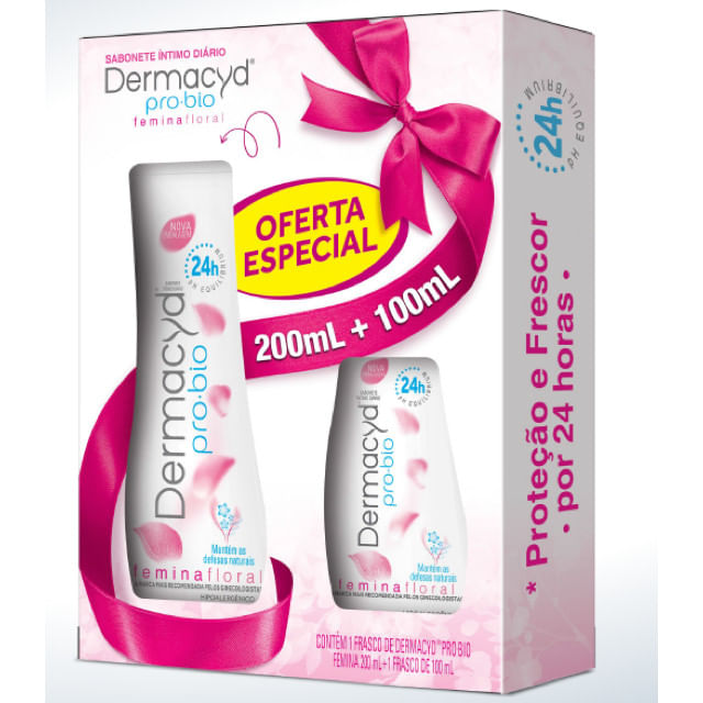 Sabonete Líquido Íntimo DERMACYD Pro-Bio Femina Floral 200ml + 100ml Oferta Especial