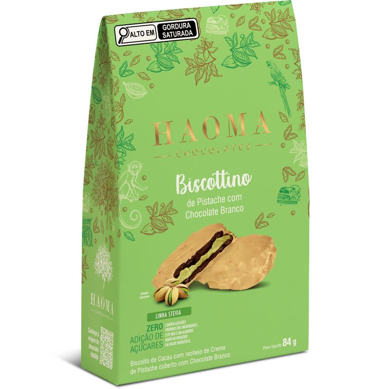 Biscoito HAOMA Biscottino Pistache com Chocolate Branco Zero Adição de Açúcares 84g