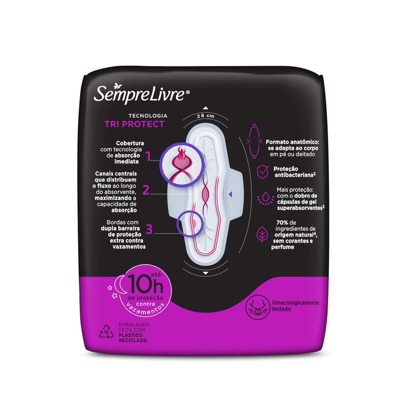 Absorvente Higiênico SEMPRE LIVRE Adapt Plus Noite e Dia com Abas Cobertura Seca com 8 Unidades