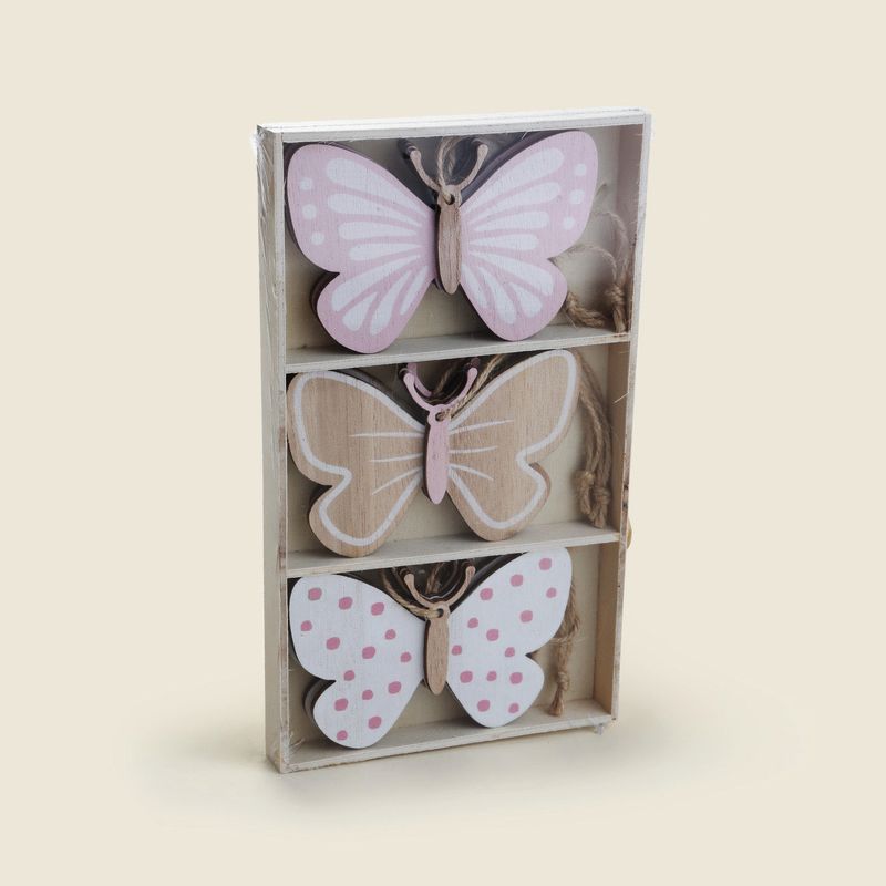Kit de Enfeite de Borboleta A\CASA Bloom MDF com 3 Unidades