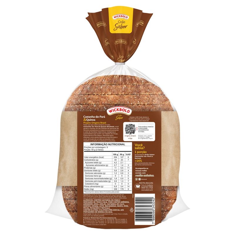 Pão WICKBOLD Grão Sabor Castanha do Pará & Quinoa 450g