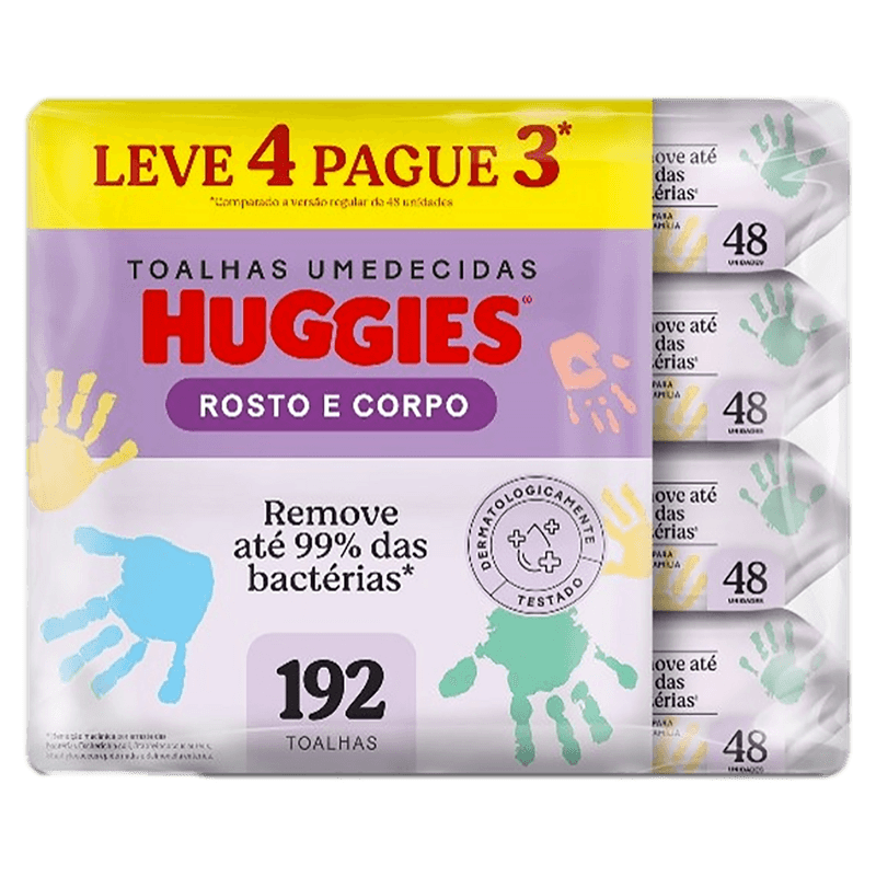 Toalhas Umedecidas HUGGIES Rosto e Corpo 4 Pacotes com 48 Toalhas cada Leve 4 Pague 3